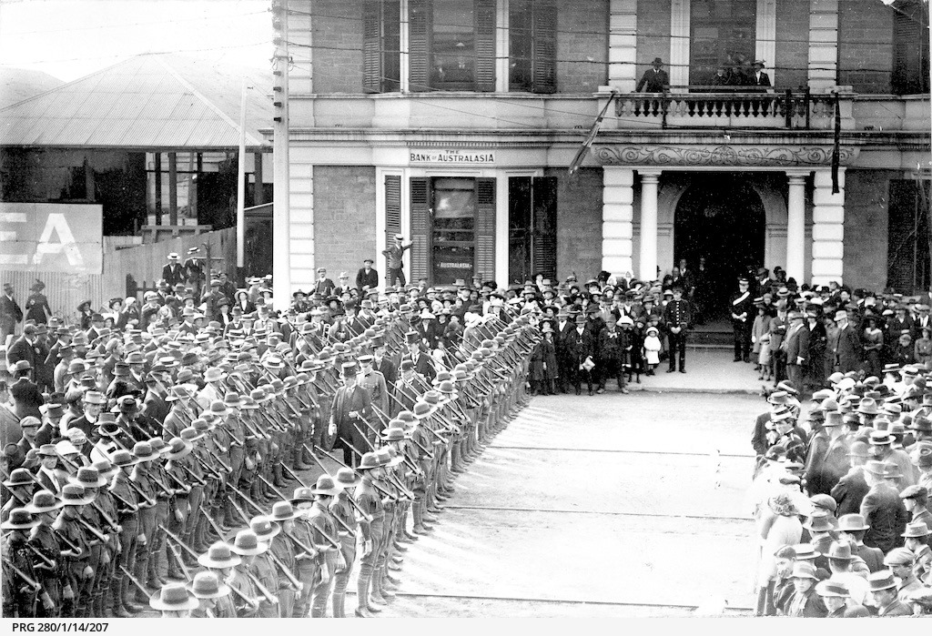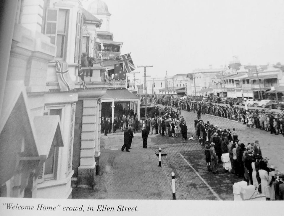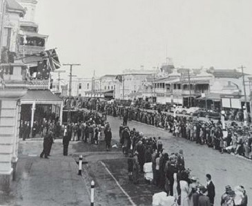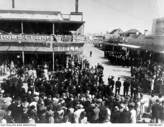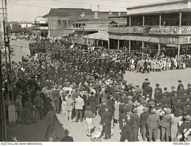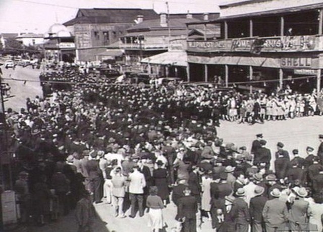 1944 RAAF and WAAAF Personell forming up in Ellen Street prior to Parade Large Crowd of Civillians