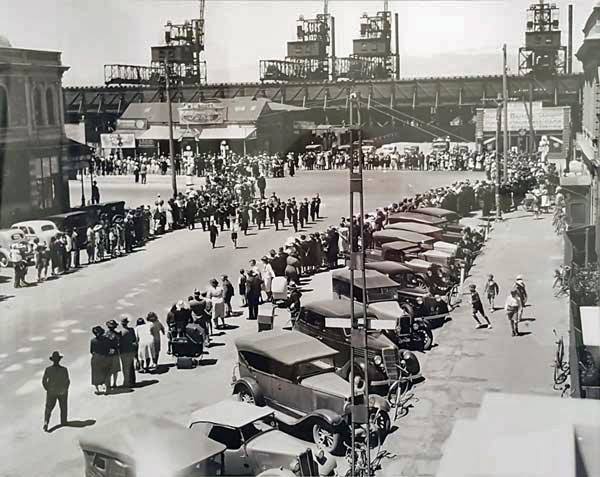 Crown of People around Train in Ellen Street