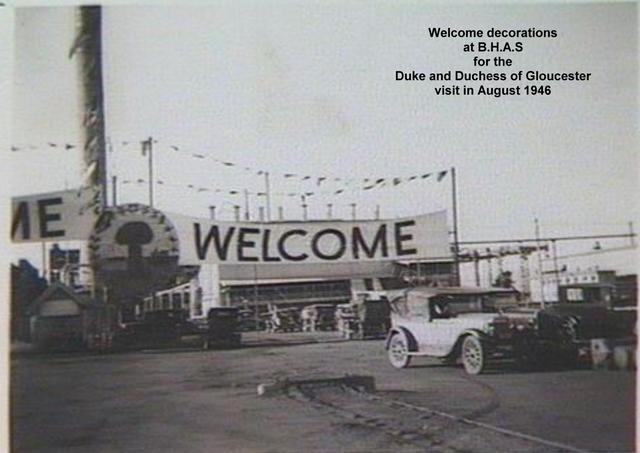 1946 Welcome decorations at B.H.A.S. for the Duke and Duchess of Gloucester visit in August 1946