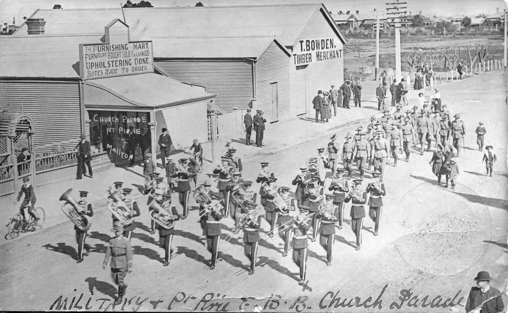 Military and Church Parade in front of T. Bowden’s Factory
