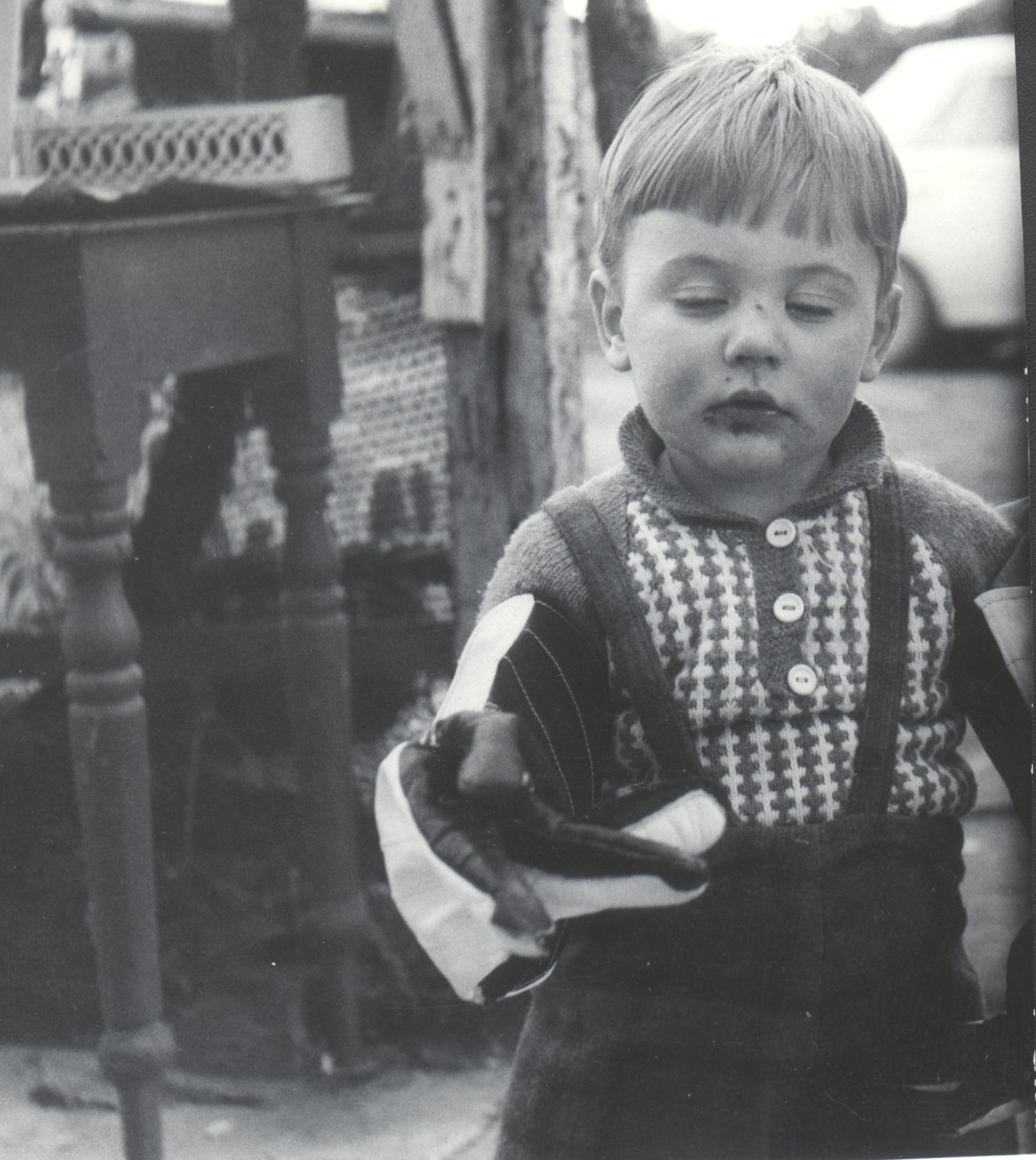 Child in Back Yard with old Loo in Background