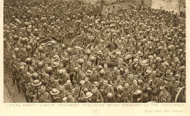 Loyal Nth Lancashire s Regiment cheering when ordered to the trenches