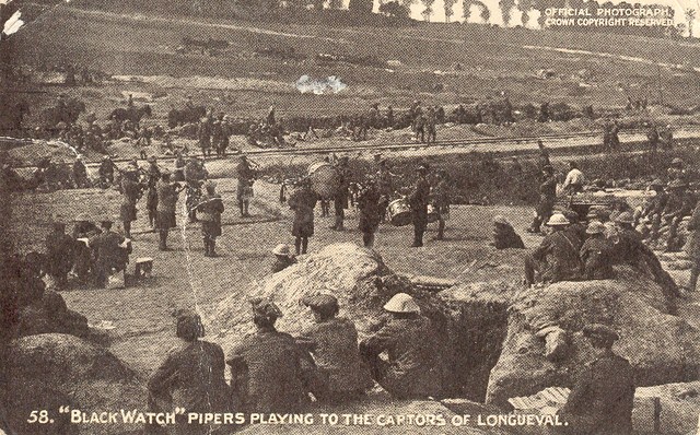 Black Watch Pipers playing to the captors of Longgueval which was taken in 25 minutes