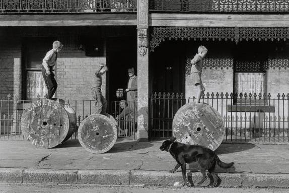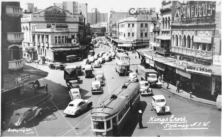 1957 A bustling Kings Cross showing a tram, double-decker bus, and a Policeman on traffic point