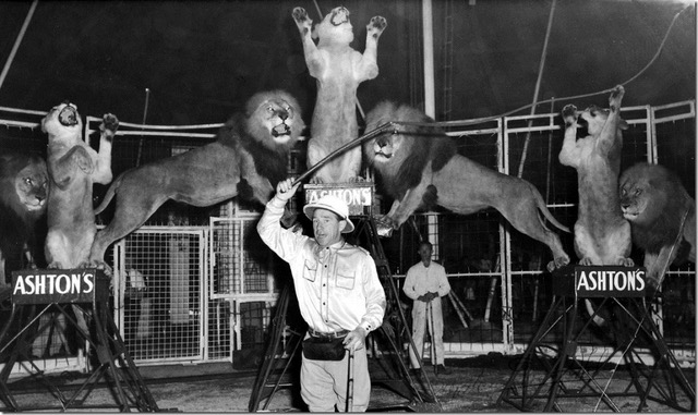1959 Ashton's Circus, Sydney, NSW. Fritz Schulz and his group of lions