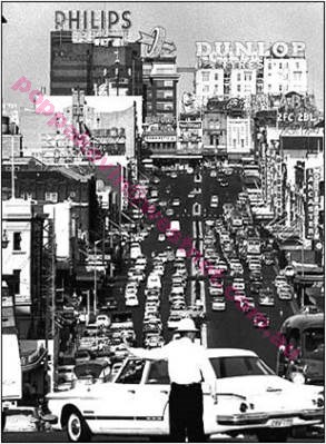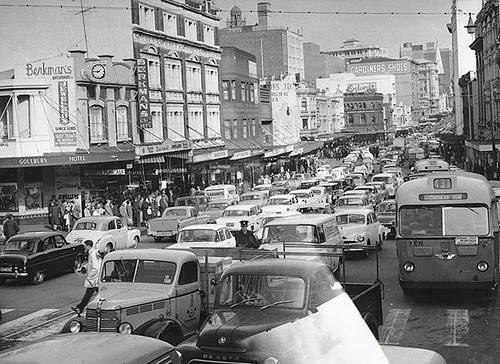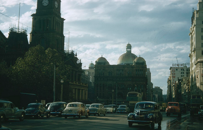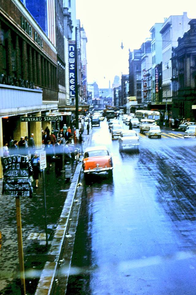 1960 George Street. Looking down the hill from Goulburn Street towards Haymarket