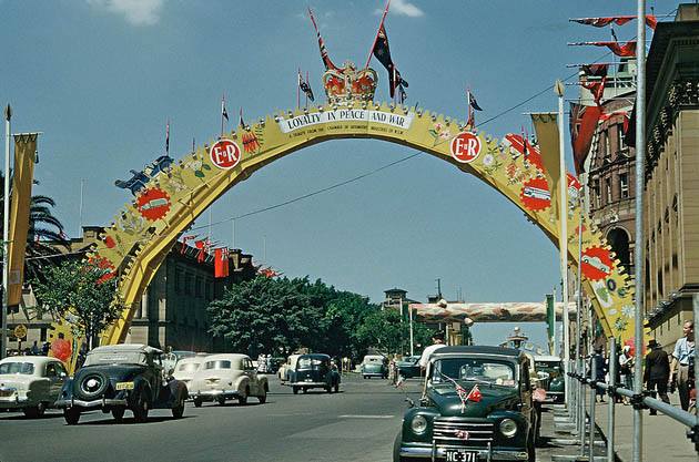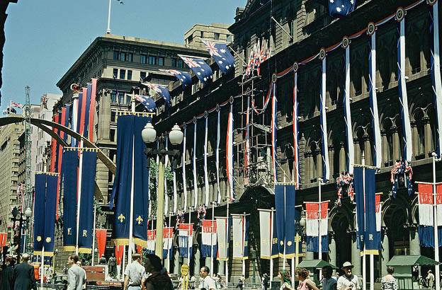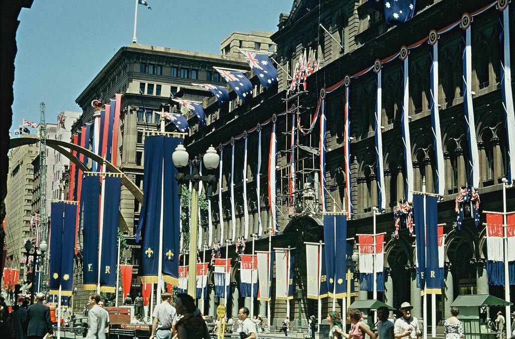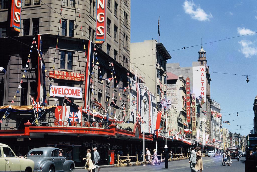 1954. Royal tour decorations. George Street