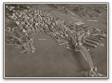 1950 circa . Aerial view of the Sydney Harbour Bridge