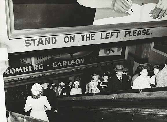 1948 Sydney . Rail commuters on the escalators at Wynyard Railway Station
