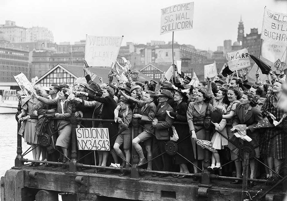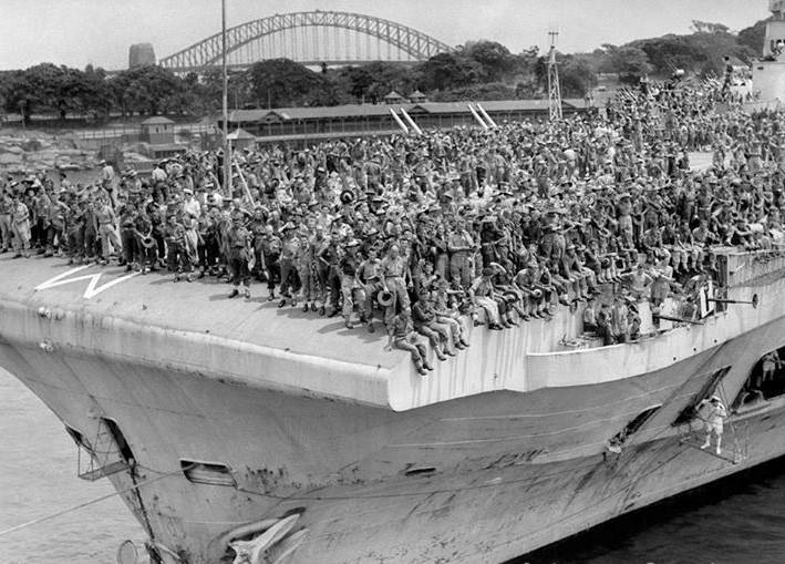 1945-13 October . 1300 ex prisoners of war (from the 8th Division) arrive at Circular Quay aboard the HMS Formidable