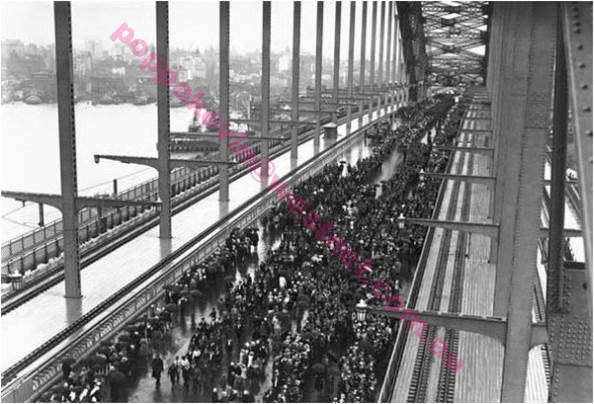 1932 Sydney Harbour Bridge opening Foreman stonemason, Jock McKay, proudly leads 100 workers at the start of the Bridge Parade