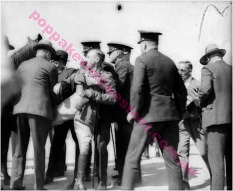 1932 Francis De-Groot seized after cutting Sydney Harbour Bridge Ribbon at Opening