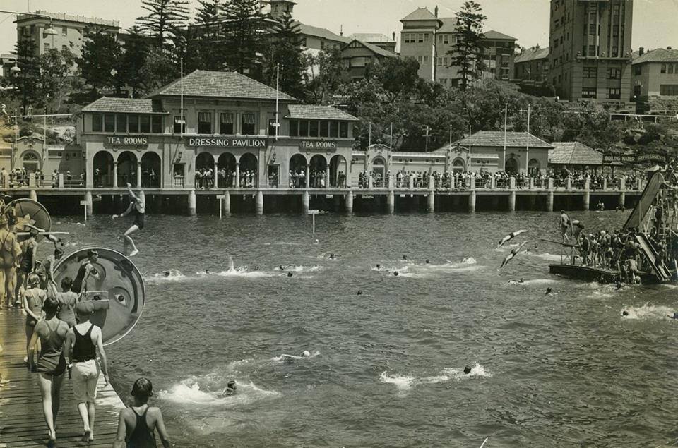 1932 circa . Ferry Dee Why and Manly Harbour pool