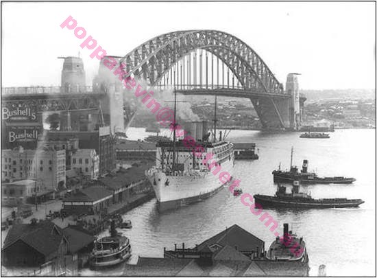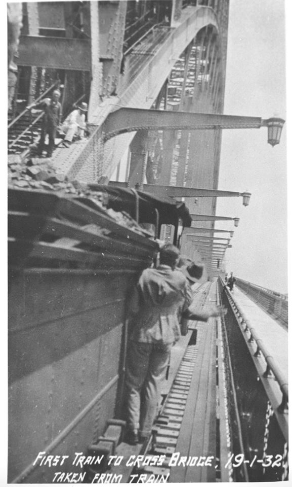 1932 Sydney Harbour Bridge. Depicted is the first train to cross the bridge