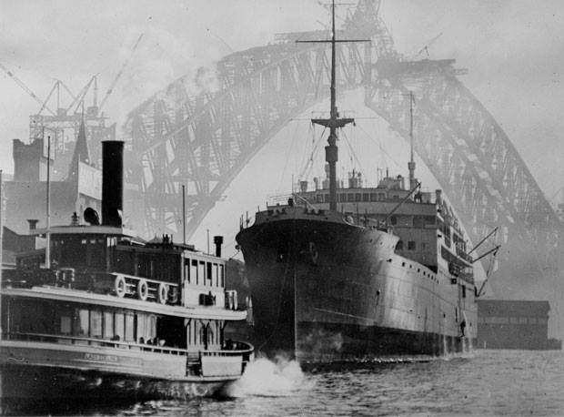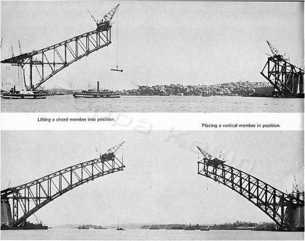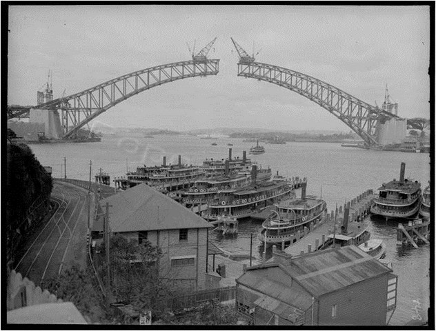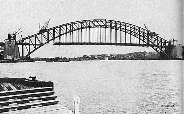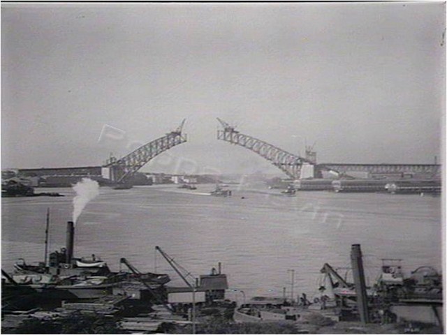 1930, high over the ships in the harbour, the two halves of the Harbour Bridge are almost ready to be joined