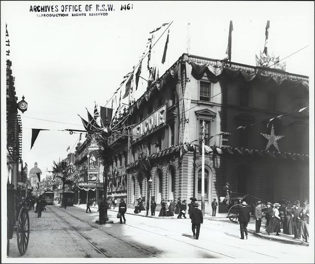 1901 Sydney . George Street, decorated for the visit of the Duke and Duchess of Cornwall and York