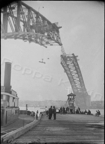 1930 6 January . View of the Sydney Harbour Bridge under construction from the Church of England Grammar School