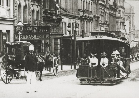 1900 circa Flower sellers in front of Cable Trams, King Street